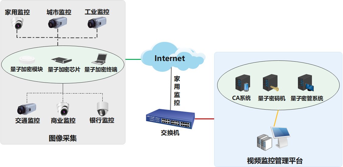 世融能量视频监控量子加密解决方案融合量子信息技术和密码技术,使用国密局核准的密码算法,对视频监控图像(信源)加密,即在图像采集端加密后传输,管理端解密。保证视频信息在互联网上传输的保密性和完整性。该方案打通从前端设备接入到应用展现的端到端能力,实现从采集、流转、可视、智能分析、跨部门跨系统之间的数据共享应用。